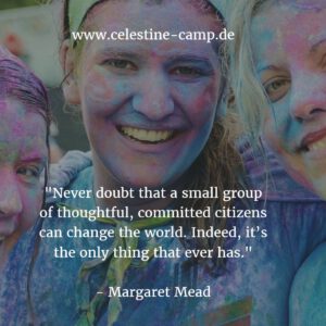 Auf dem Celestine Camp (davor: Celestine Community Camp und Celestine Sommer Camp) legten wir besonderen Wert auf die Gemeinschaftserfahrung der großen Gruppe. Wir wollten den besonderen Zauber von Mensch-zu-Mensch-Verbindungen, der in den Celestine Erkenntnissen beschrieben wird, fühlbar werden lassen. Wir wollten weg von den sehr flüchtigen, berauschenden Festival-Erfahrungen, die sich immer gut anfühlen, aber nur sehr, sehr selten zu wahrhaftigen Veränderungen oder Weiter-Entwicklungen führen. Leider haben wir dieses Ziel nicht erreicht.